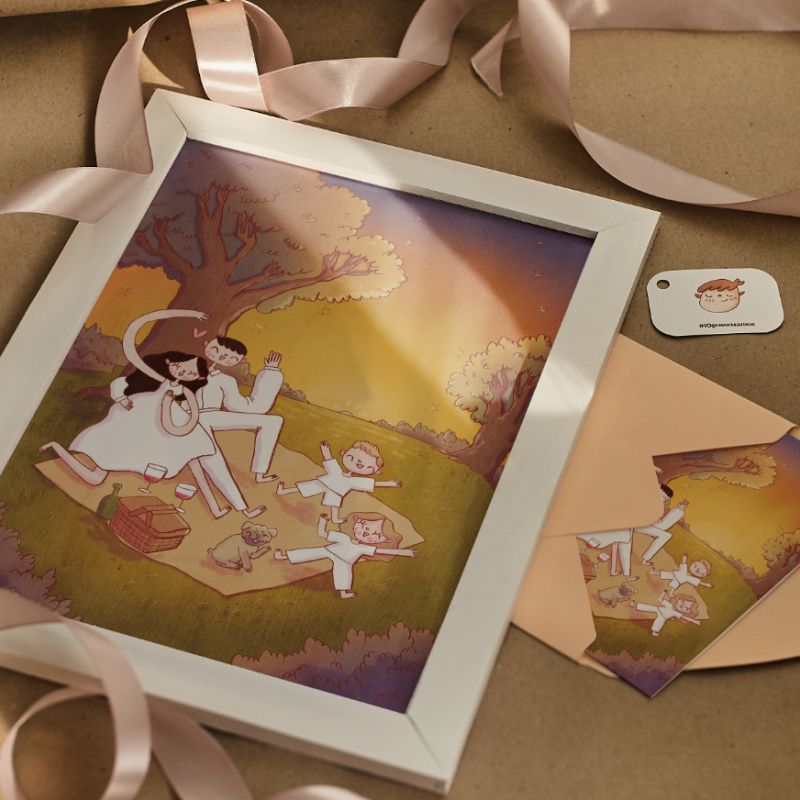 Для ілюстрації, Надсилаєте фото, можна разом можна окремо ( якщо більше людей ) і побажання ( кольори, одяг, фразу)