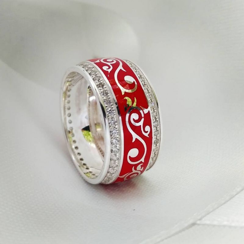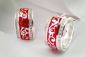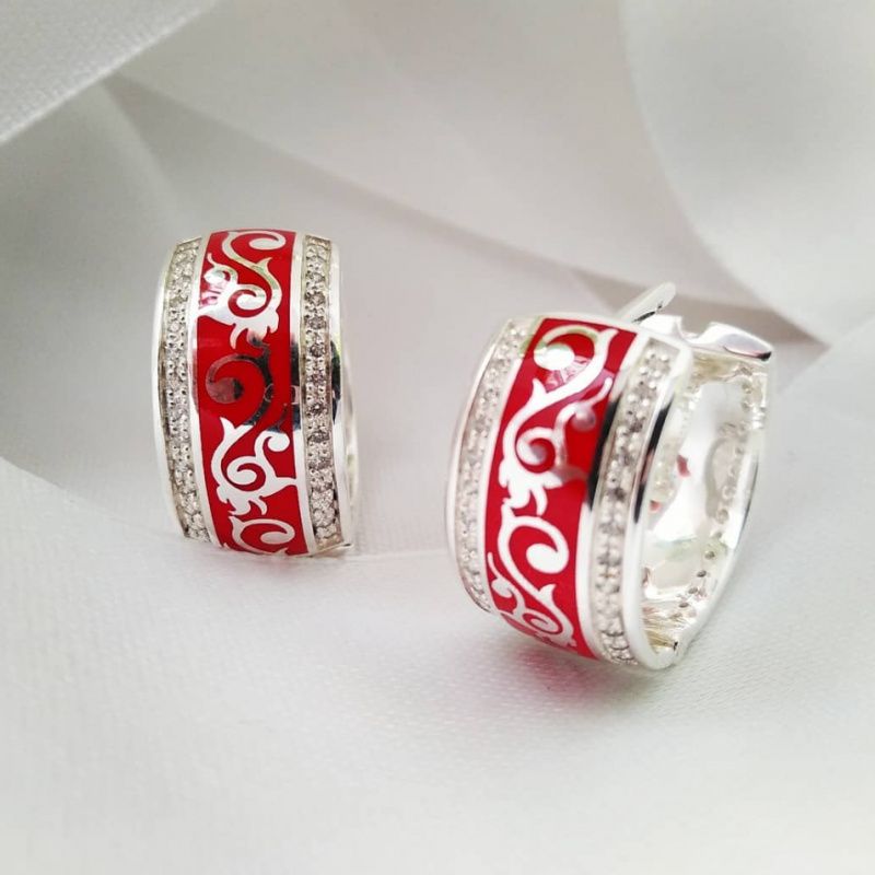 Комплект срібне кільце та сережки з колекції Vincitore у червоному кольорі.