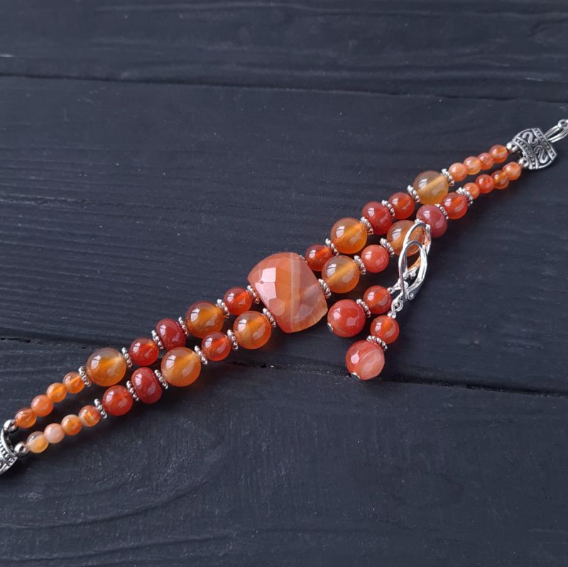 Комплект : браслет та сережки з натурального сердоліку.