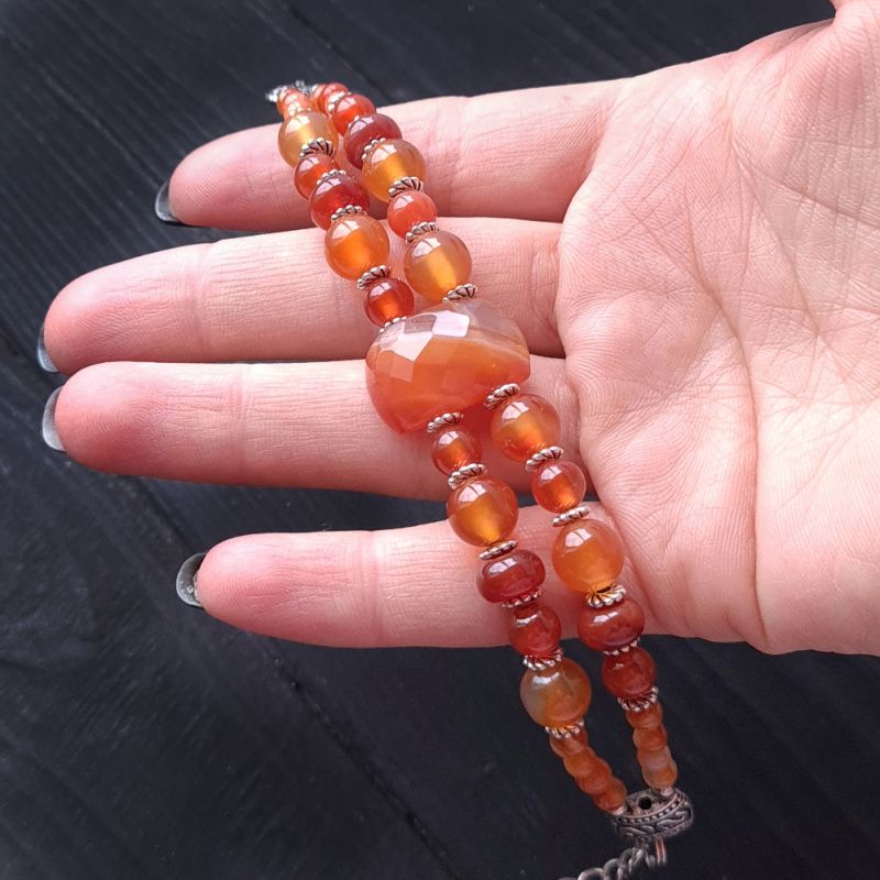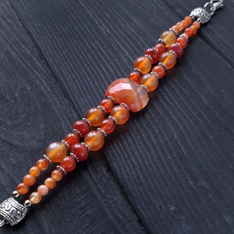 По центру - кабошон сердоліка, що має безліч граней, які сяють на ручці підчас руху.