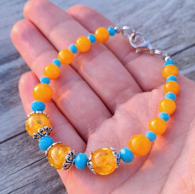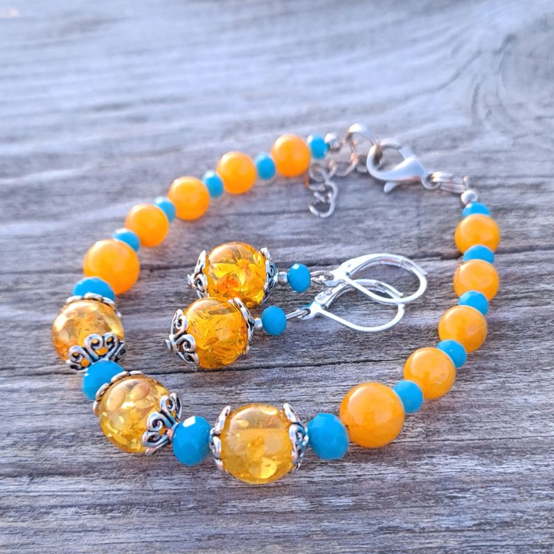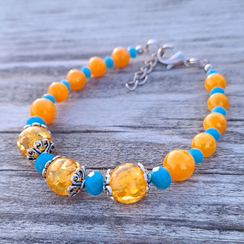 Браслет "Все буде Україна". Кожен наближає перемогу як може. Прикраса у кольорах нашого прапору може стати подарунком - талісманом, що нагадуватиме кожної миті, що ми - воїни світла, правда за нами і ми переможемо. Застібка карабін з подовжувачем, щоб регулювати довжину самостійно. Довжина браслету - на ваше замовлення. Сережки на інших фото не входять у вартість, але можуть бути замовлені окремо. До браслету також можу зробити кулон на ланцюжку, чи намисто у аналогічному дизайні.
