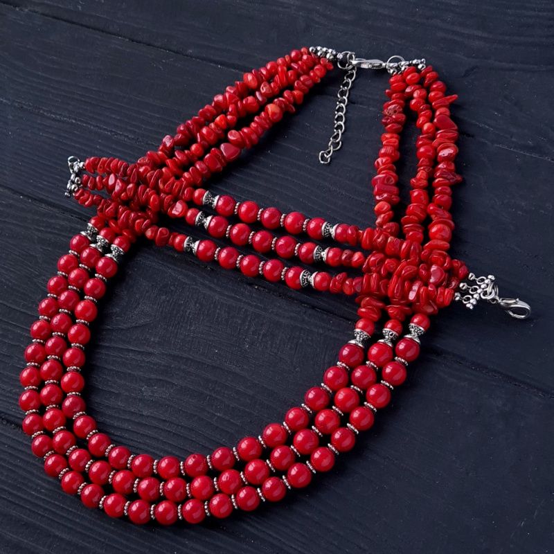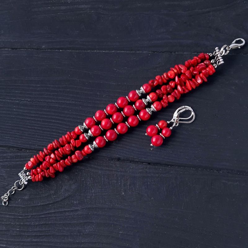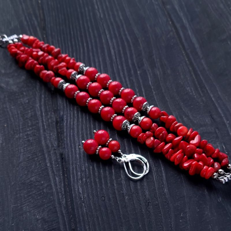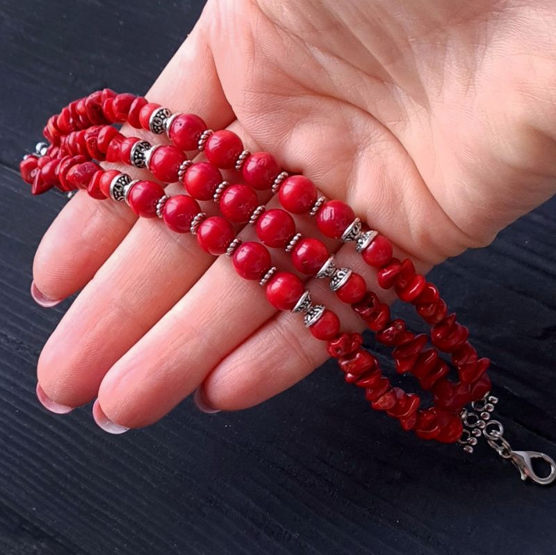 Трьохрядний браслет з натуральних коралів . Довжина - на вашу руку, узгоджується при оформленні покупки. Вартість вказана за базову довжину до 19 см включно плюс 3 см подовжуючий ланцюжок.