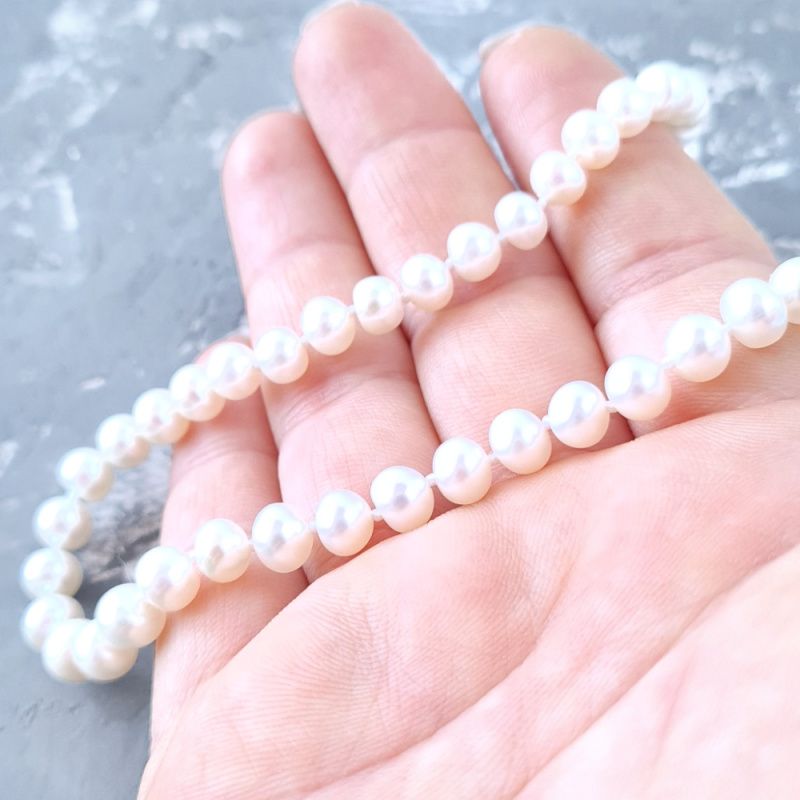Намисто з натуральних перлів високого класу ААА, В намисті - рівні красиві перлинки без крапок і смужок, з красивим світінням.. Застібка кольє - СРІБЛО 925 проба. Дійсно срібло українскього виробництва.