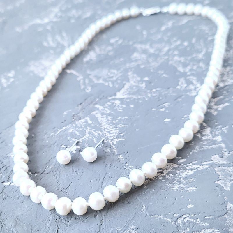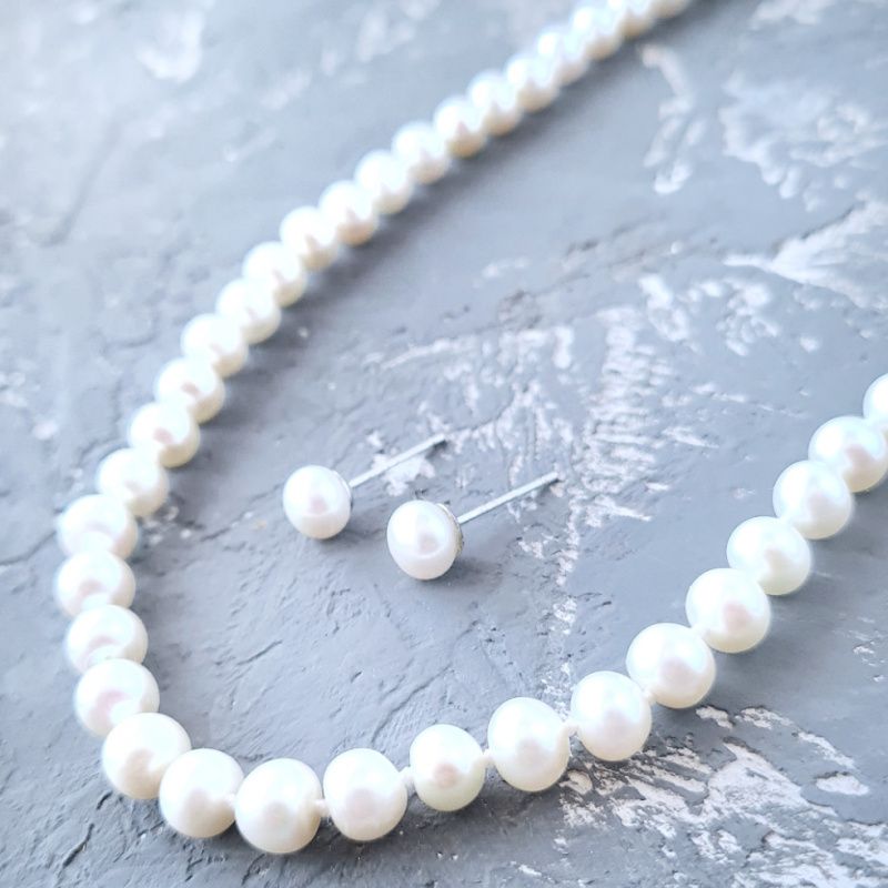 Комплект з натуральних перлів високого класу ААА, В кольє і сережках - рівні красиві перлинки без крапок і смужок, з красивим світінням.. Застібка кольє та пуссети-сережки - СРІБЛО 925 проба. Дійсно срібло (не китайський або тайське "а-ля срібло" тому як тягнемо срібну дріт і ставимо пуссети - самі, і в якості впевнені.Вартість вказана за кольє, довжиною до 40 см плюс 5 см подовжуючий ланцюжок та сережки. за бажанням можна замовити будь-яку довжину намиста, потрібну вам. Вартість буде перерахована відповідно до потрібної вам довжини. Діаметр перлин : 6-5 мм (по центру крупніші, на кінцях менші). Можу зробити інші сережки в комплект до такого намиста. Дизайн і вартість узгодимо після оформлення покупки. Ви можете замовити намисто з перлів у техніці"Вузлик" будь-якої довжини. Також можна замовити з золотою застібкою. Також в комплект з перлів можу зробити браслет, або брошку. На останньому фото є подарунковий футляр з натурального дерева, що не входить у вартість, але може бути замовлений окремо.