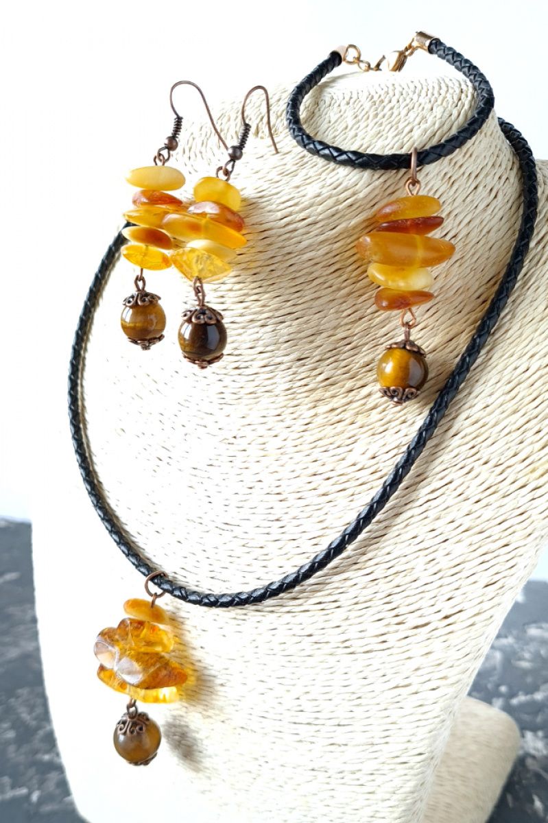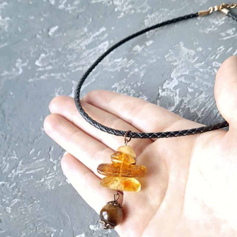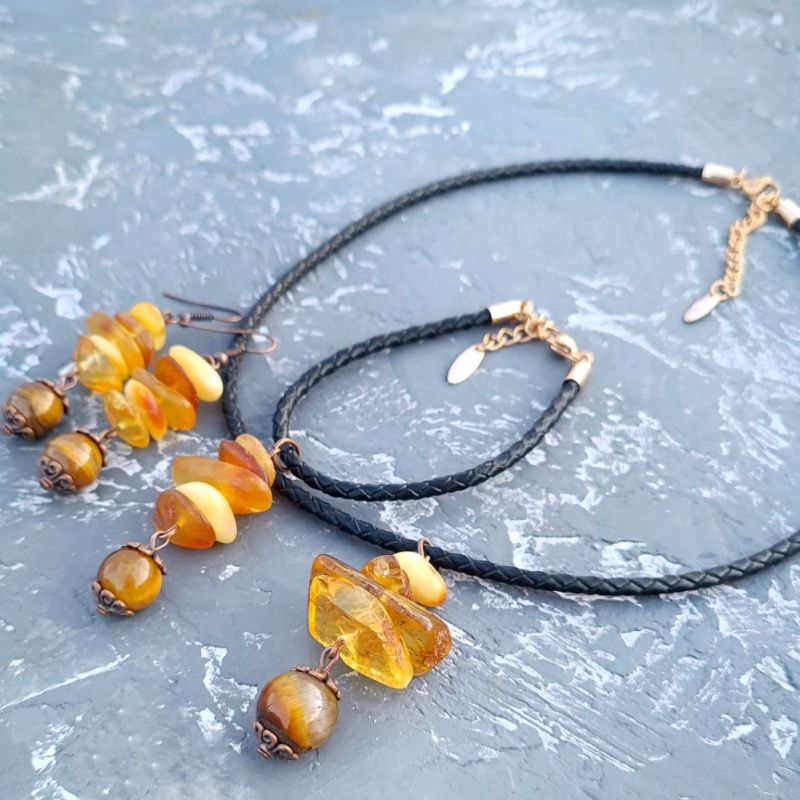 Кольє-чоккер з натуральним янтарем. Фурнітура: кріплення, застібка, подовжувач: якісна позолота.