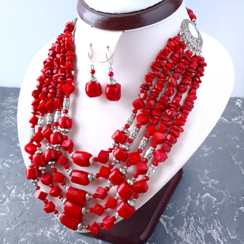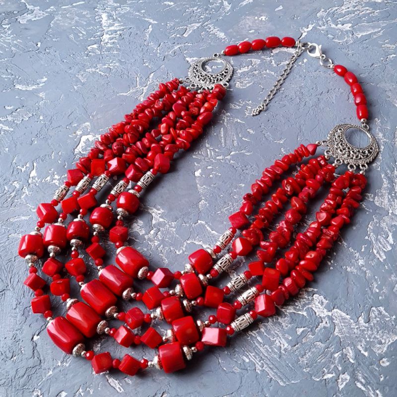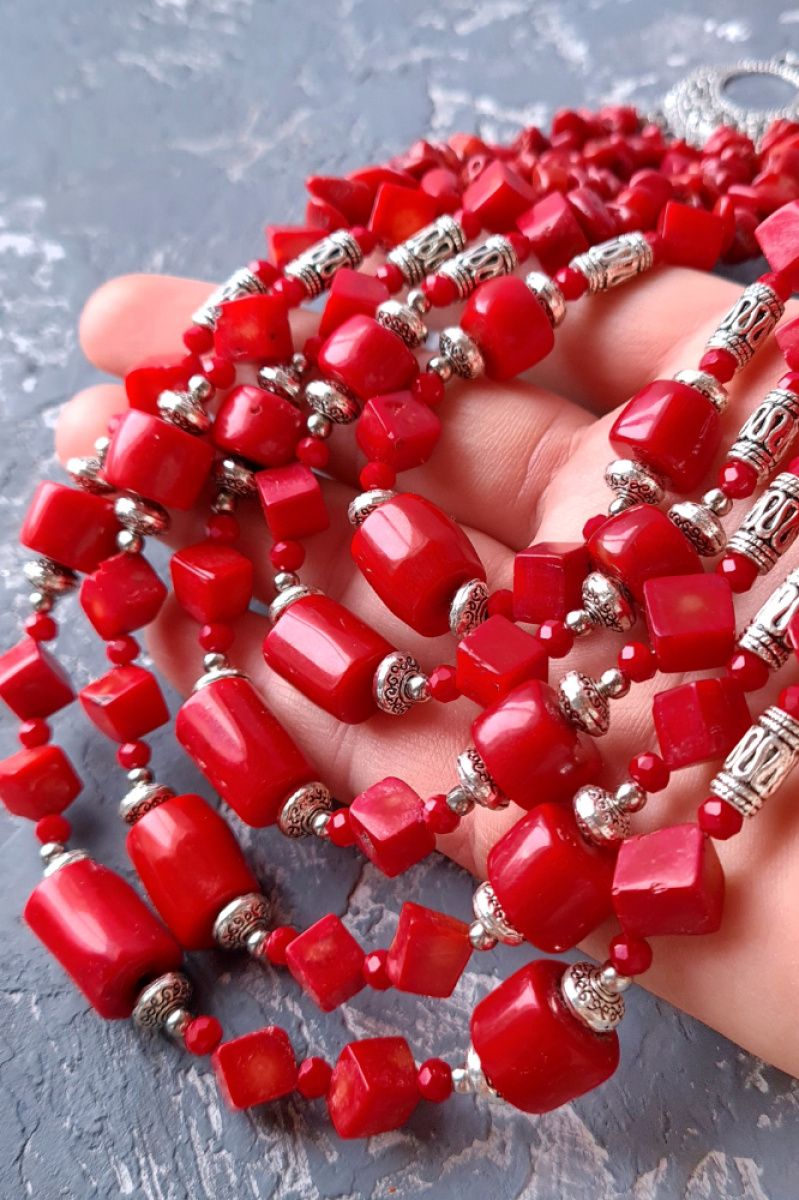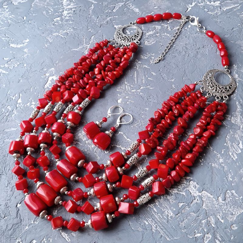 Комплект прикрас: намисто та сережки з натуральних коралів та гранених кришталевих намистинок. Застібки сережок: срібло 925 проби. Гарне намисто та сережки під вишиванку, білу чи чорну блузку, сукню або навіть звичайну сорочку - прекрасний подарунок вашій жінці, дружині,подрузі, мамі, сестрі на день народження чи коралове весілля. Вартість вказана за комплект: намисто, довжиною верхньої низки: 45 см,плюс 3 см кожна наступна низка, та сережки. На кінці намиста є подовжуючий ланцюжок +5 см, щоб ви самостійно могли регулювати довжину намиста. На замовлення можу зробити будь-яку іншу, потрібну вам довжину. Вартість буде перераховано згідно потрібної вам довжини. До намиста у комплект можу зробити браслет. Можна придбати прикраси окремо. На останньому фото є святковий футляр з натурального дерева, який не входить у вартість, але може бути замовлений окремо.