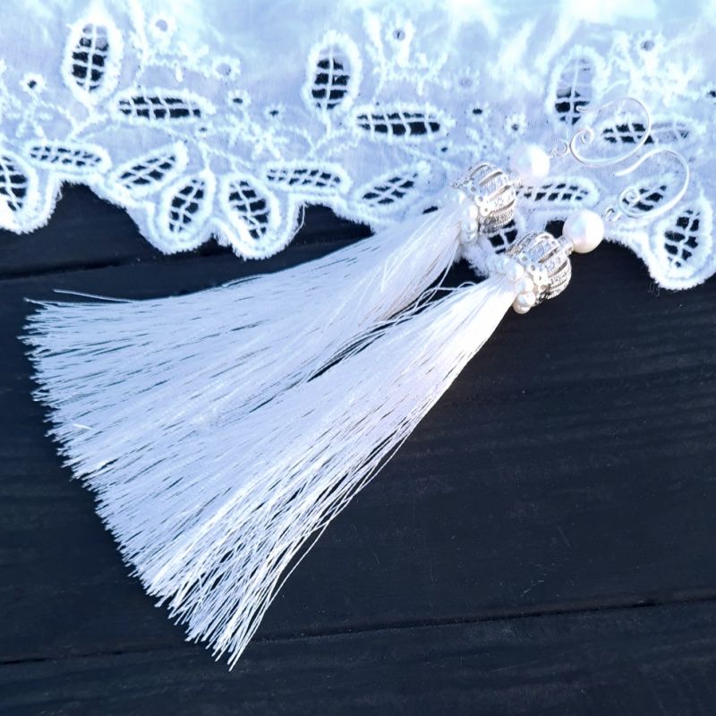 Довжина сережок на фото: 13 см. Якщо вам потрібна інша довжина сережок (більша чи менша) - замовляйте, усі деталі узгодимо.