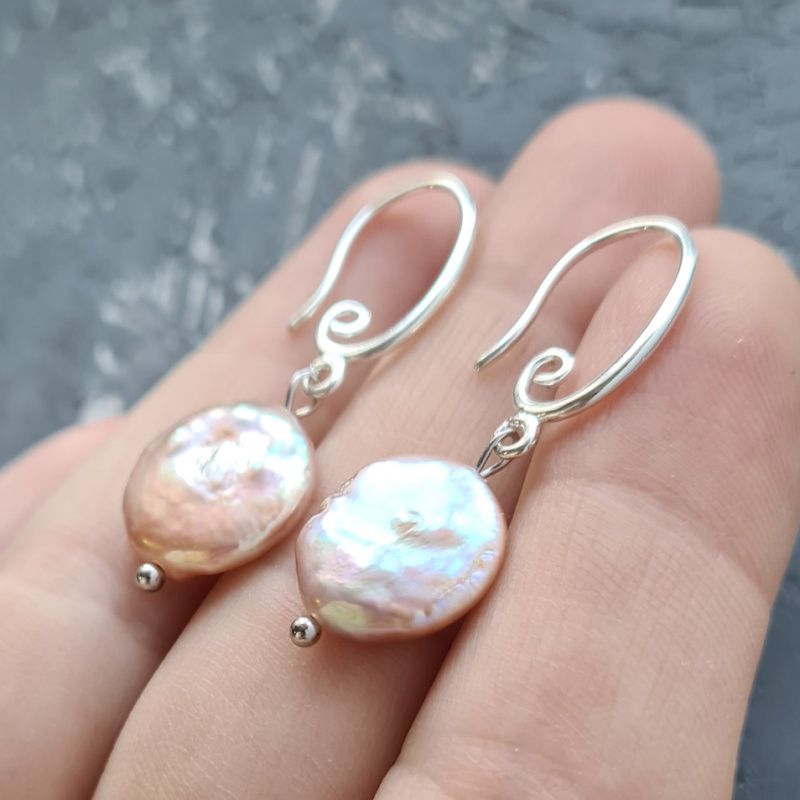 Сережки з натуральних перлів Кейші у сріблі 925 проби.
