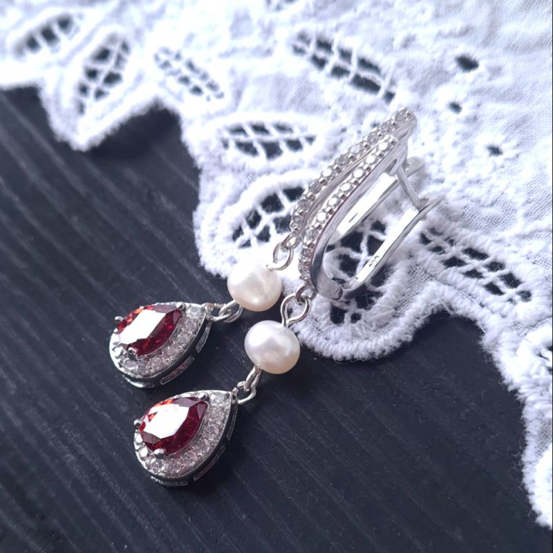 Сережки з натуральними перлинами високого класу та кристалами циркону - розкішний подарунок для дівчини, жінки, дружини на день народження чи новий рік. Також сережки можуть бути обрані як прикраси для нареченої. Застібки сережок: срібло 925 проби , інкрустовані кристалами циркону. Форма застібки: англійский замок. На інших фото є кольє, яке не входить у вартість, але може бути замовлене окремо. У комплект до сережках можу на замовлення виготовити кольє, браслет або кулон на ланцюжку.