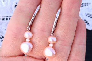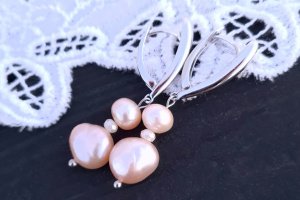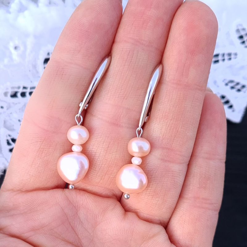 Сережки з натуральними персиковими перлинами- прекрасний подарунок для подруги, дівчини, мами, дружини на день народження, день закоханих, 8 березня, і просто, щоб нагадати, як сильно ви любите :) Колір перлин можна обрати за власним бажанням: лавандовиий (холодний) або персиковий (теплий). Розмір нижніх перлин біля 10 мм. Застібки сережок: англійський замок, якісний медичний сплав, що не виликає алергії. Також сережки з перлами можуть бути обрані як весільна прикраса для нареченої або просто приємний подарунок. Загальна довжина сережок: 40 мм.