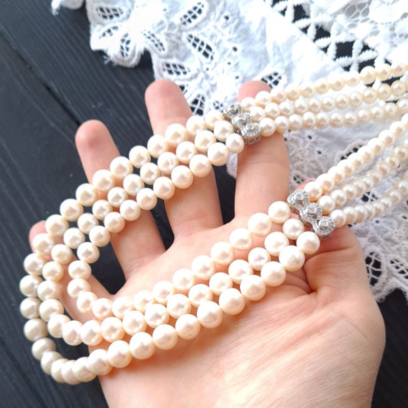 Клас перлів АА - АА+ Розмір перлів по центру до коннекторів з кристалами циркону: : 7 мм, після коннекторів: 5.5-5 мм. Під замовлення можна зробити у кольорі золото (позолота по латуні). Вартість вказана за комплект як на фото: кольеє, довжиною 40 см - верхня низка, +2 см кожна наступна низка; та браслет до 18 см включно ( розмір узгоджується після оформленння замовлення). Я роблю будь-яку, потрібну замовнику довжину намиста. Вартість буде перерахована відповідно до потрібної вам довжини. На інших фото є браслет , що не входить у вартість, але може бути замовлений окремо. Є продаж прикрас окремо.