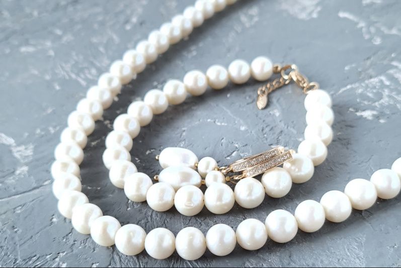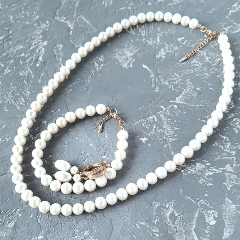Прикраси виглядають розкішно, а невеличкі цяточки на перлинках лише підтверджують їх натуральність.