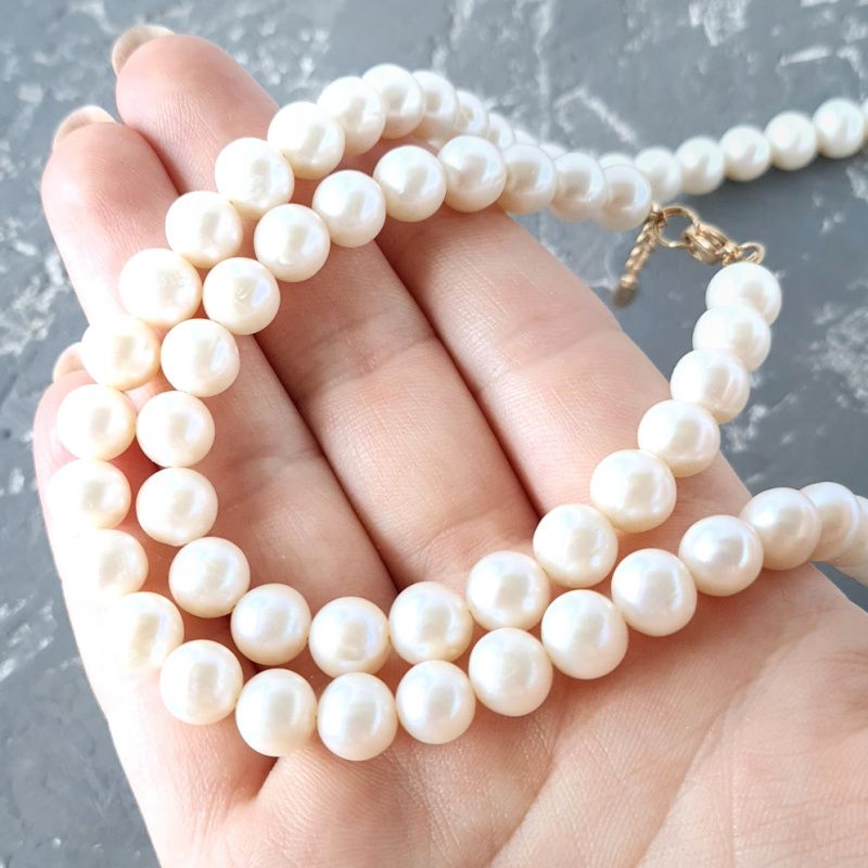Розмір перлин: 8-7 мм ( по центру - більші, по краях - менші).