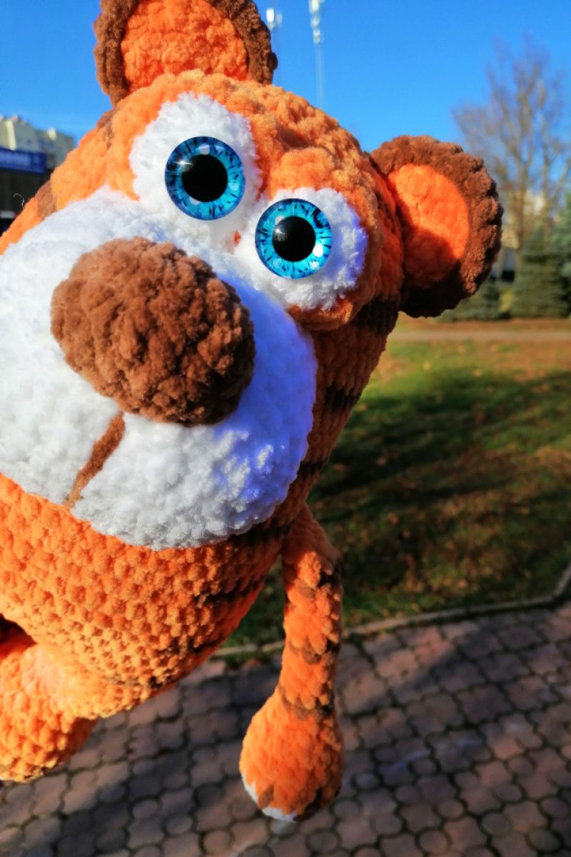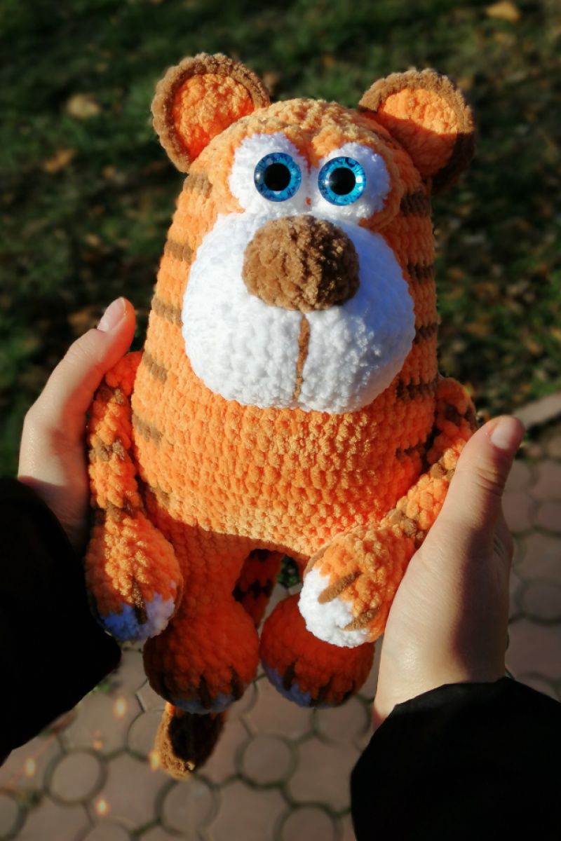 Неймовірно милий, ніжний, плюшевий тигр символ 2022 року. Зроблений із плюшевої пряжі, всередині холлофайбер. Дуже приємний на дотик! Як дитячий плед:) Висота близько 30 см і досить великий розмір!) Стане відмінним подарунком на Новий рік та додасть святкової атмосфери в інтер'єр!