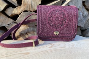 Шкіряна сумка ручної роботи "Сонце карпат", Фіолетова